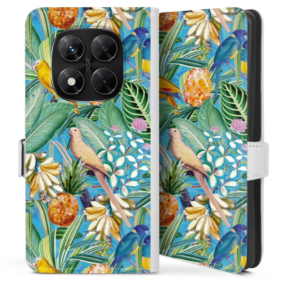 Tropical Parrots on Blue Wallpaper