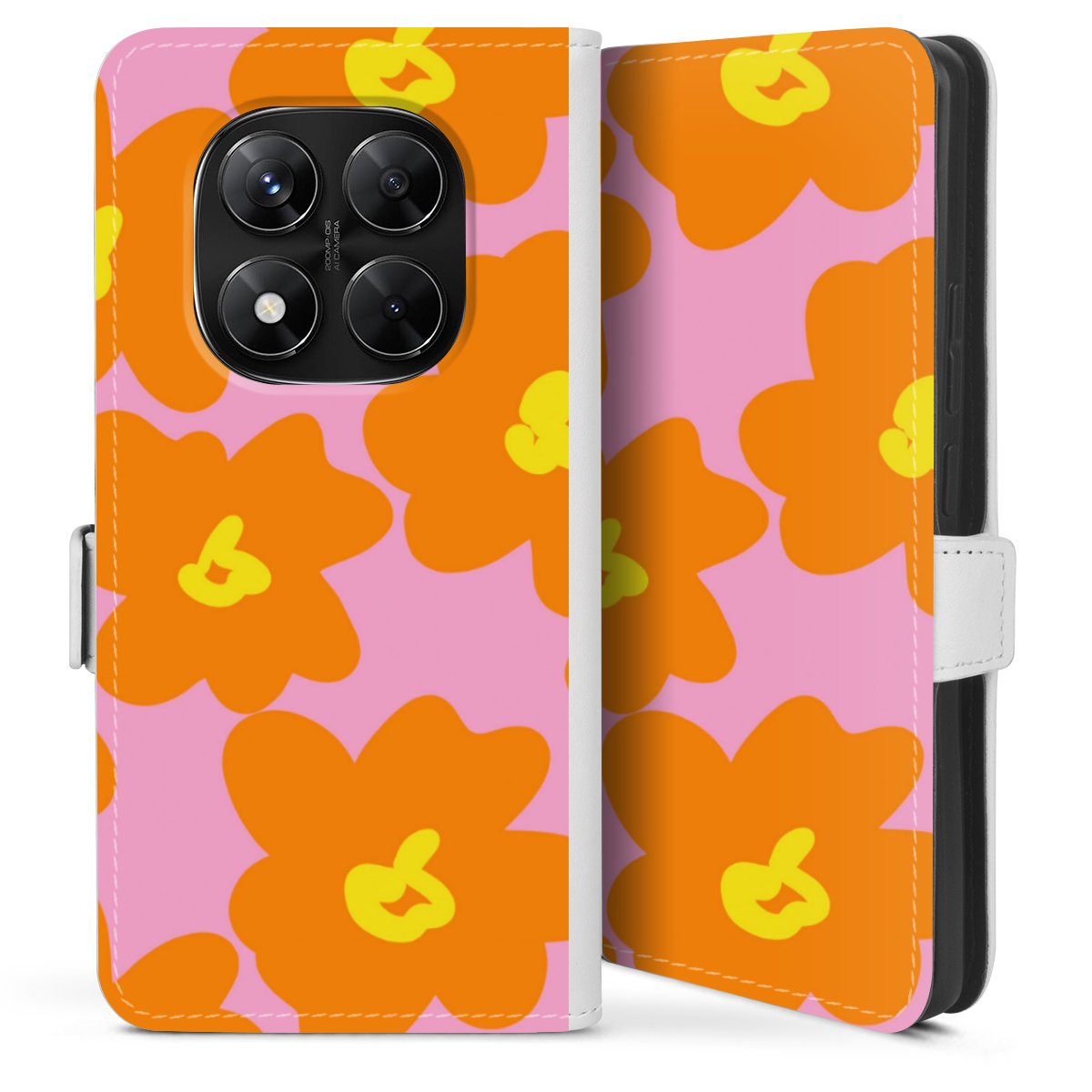 Retro floral pattern pink and orange
