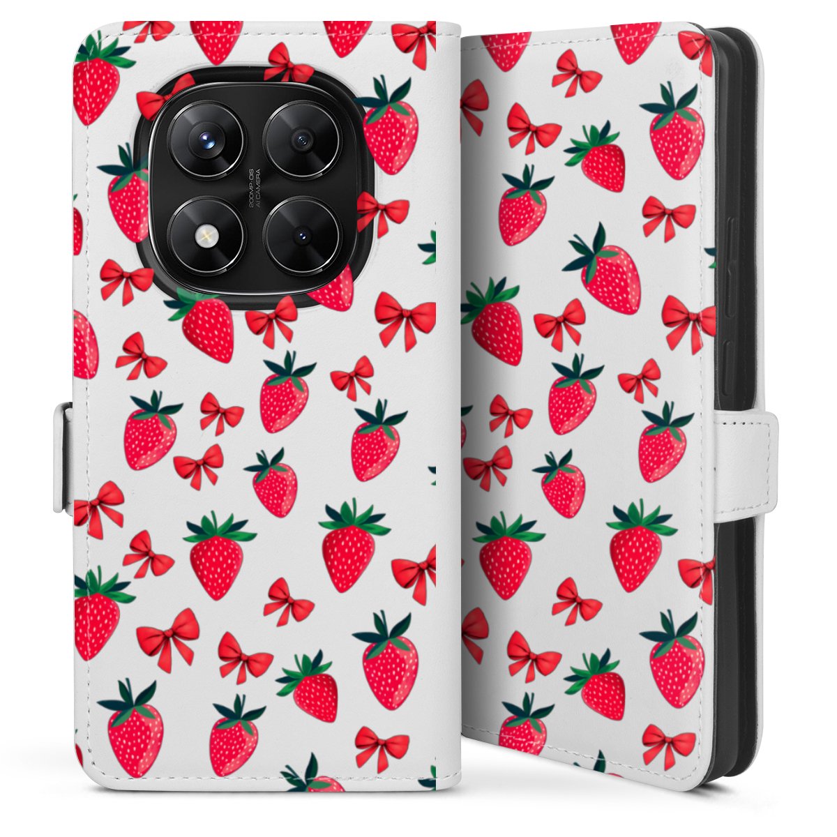 Strawberry Heart Ribbon Pattern Transparent