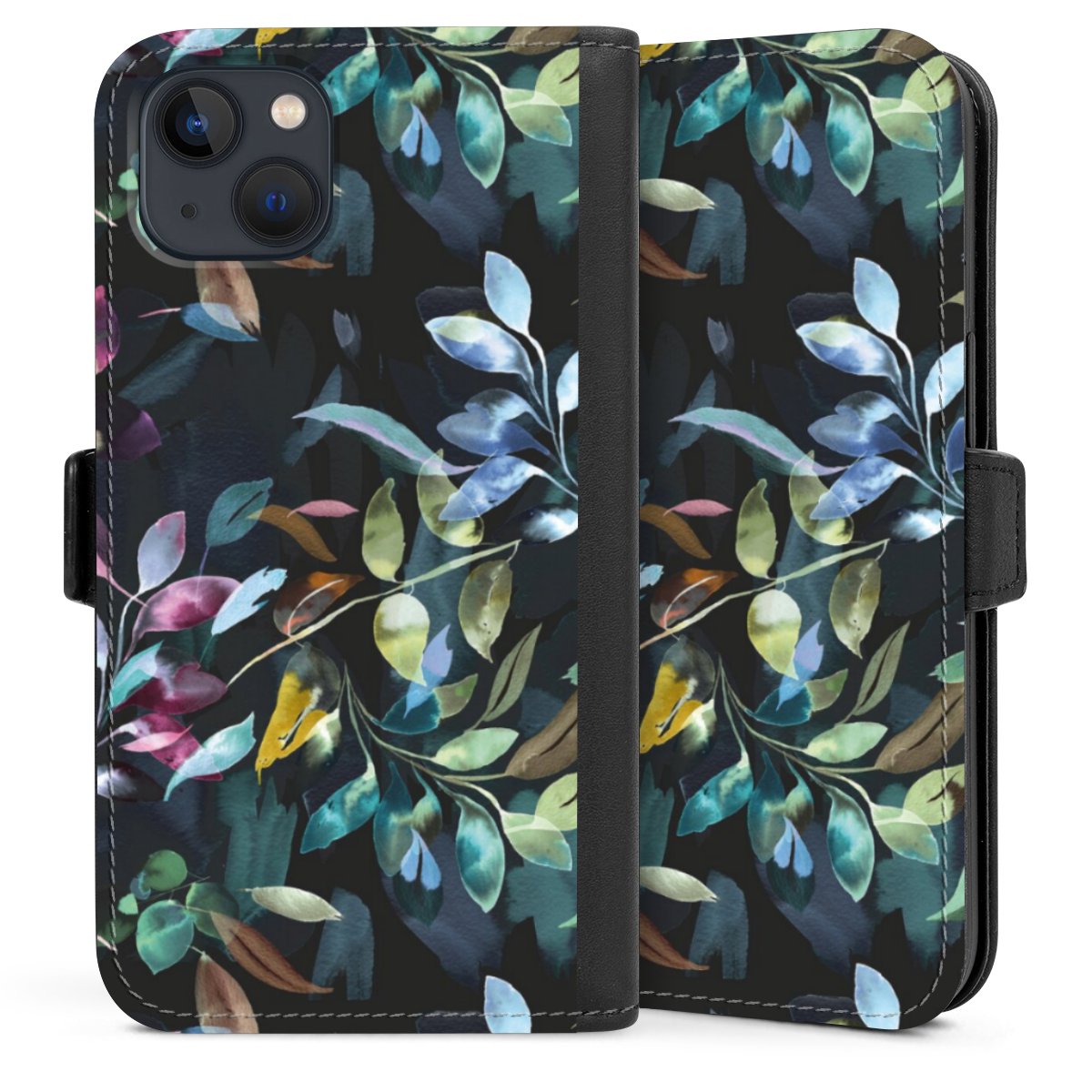 Watercolor Mystic Leaves Black