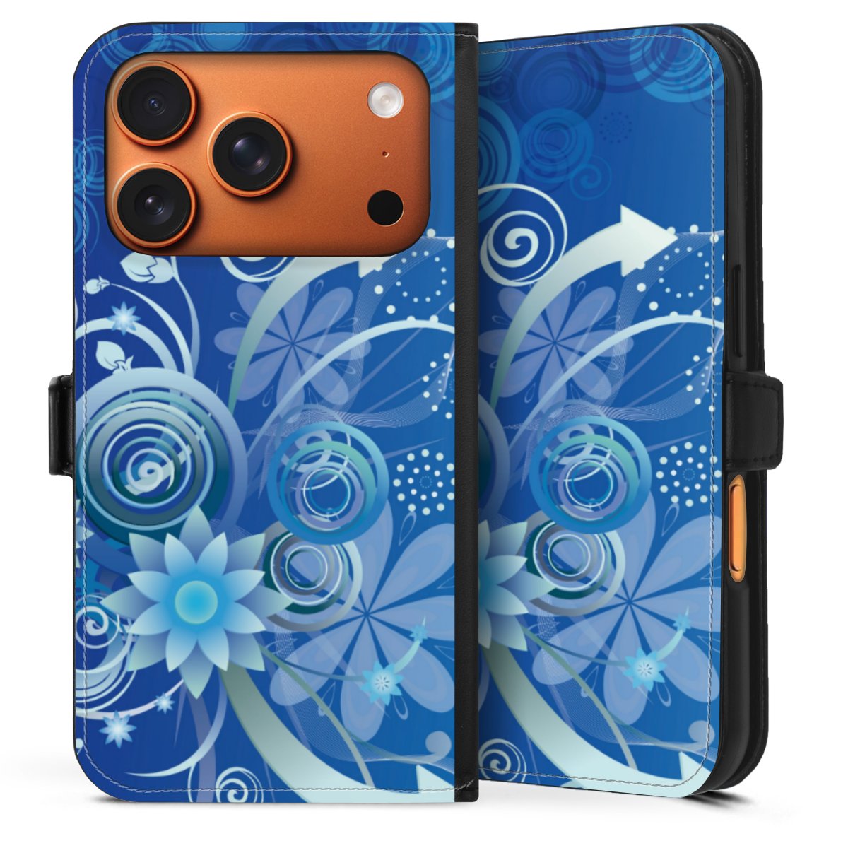 Flowers and Swirls Blue