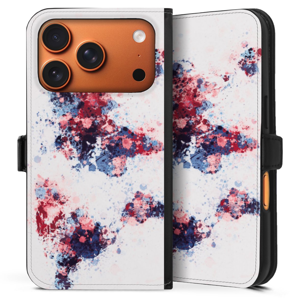World Map Paint Splashes Blue Red