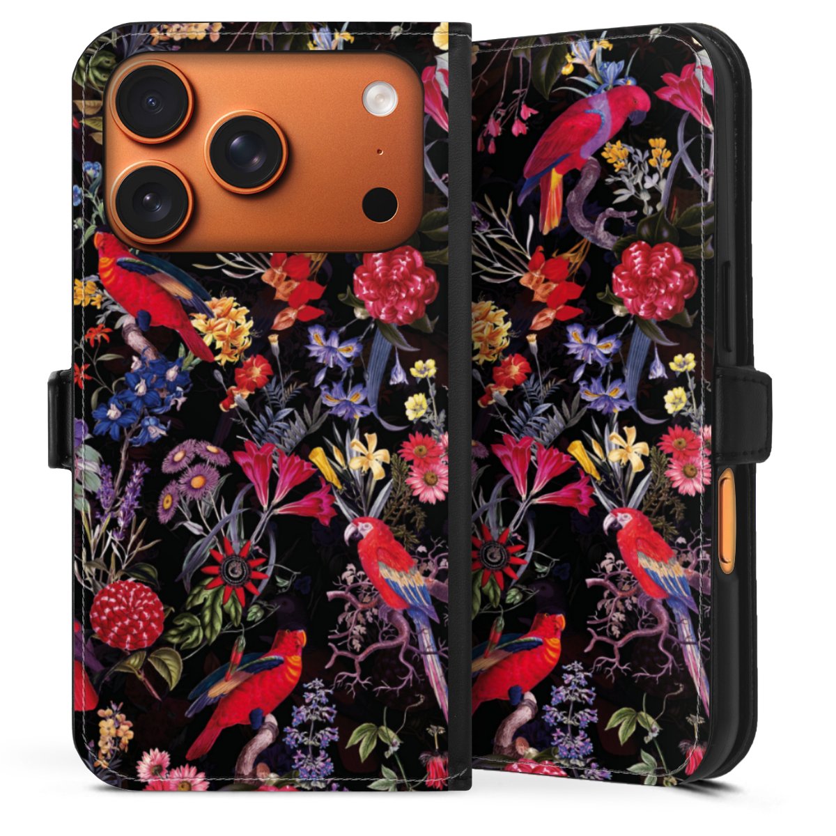 Dark Flowers and Parrots