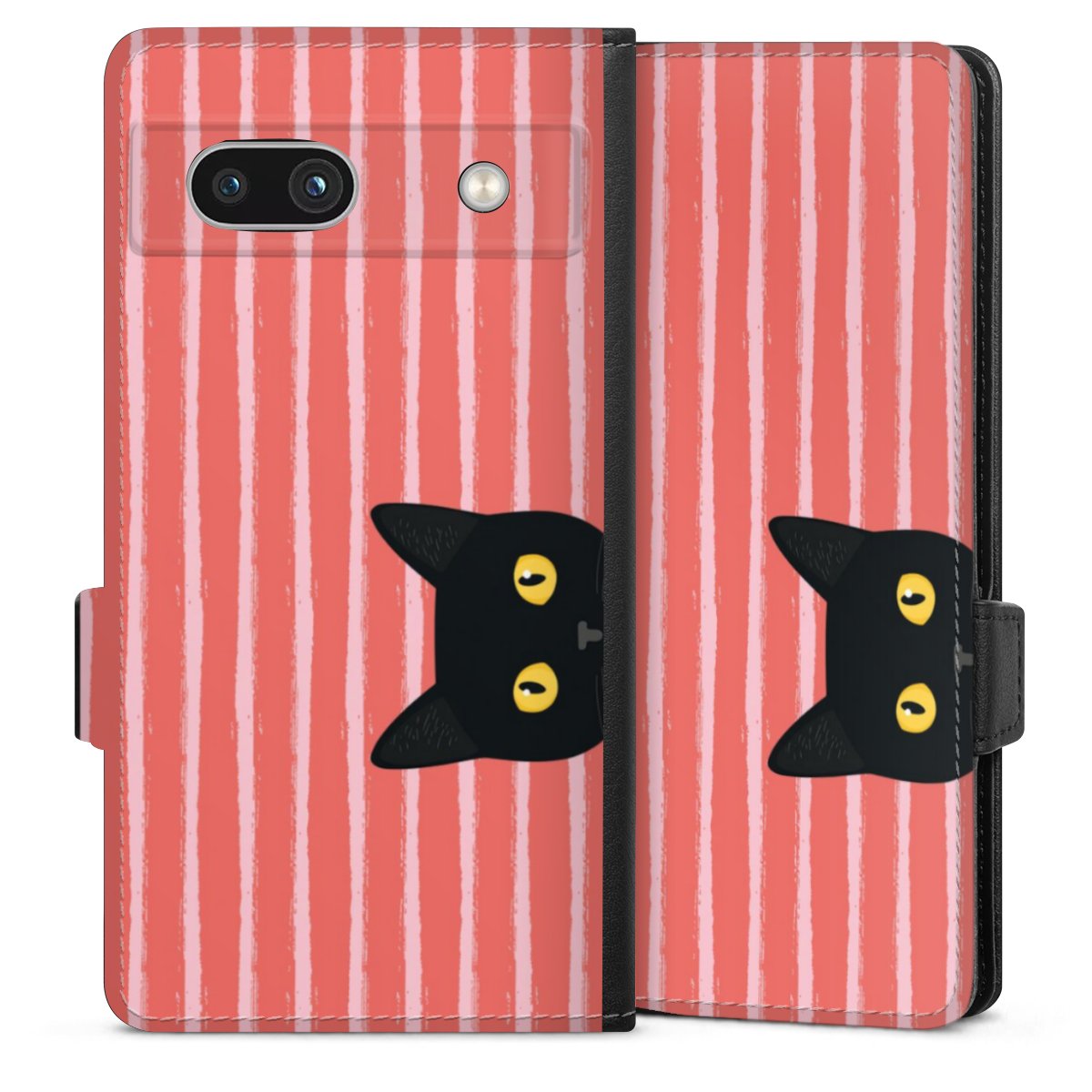 Black Cat on Orange Stripes