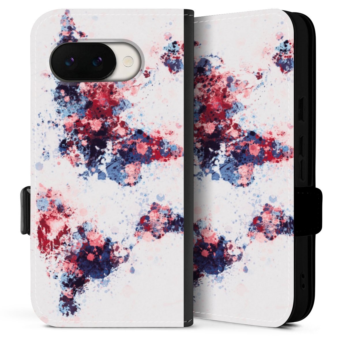World Map Paint Splashes Blue Red