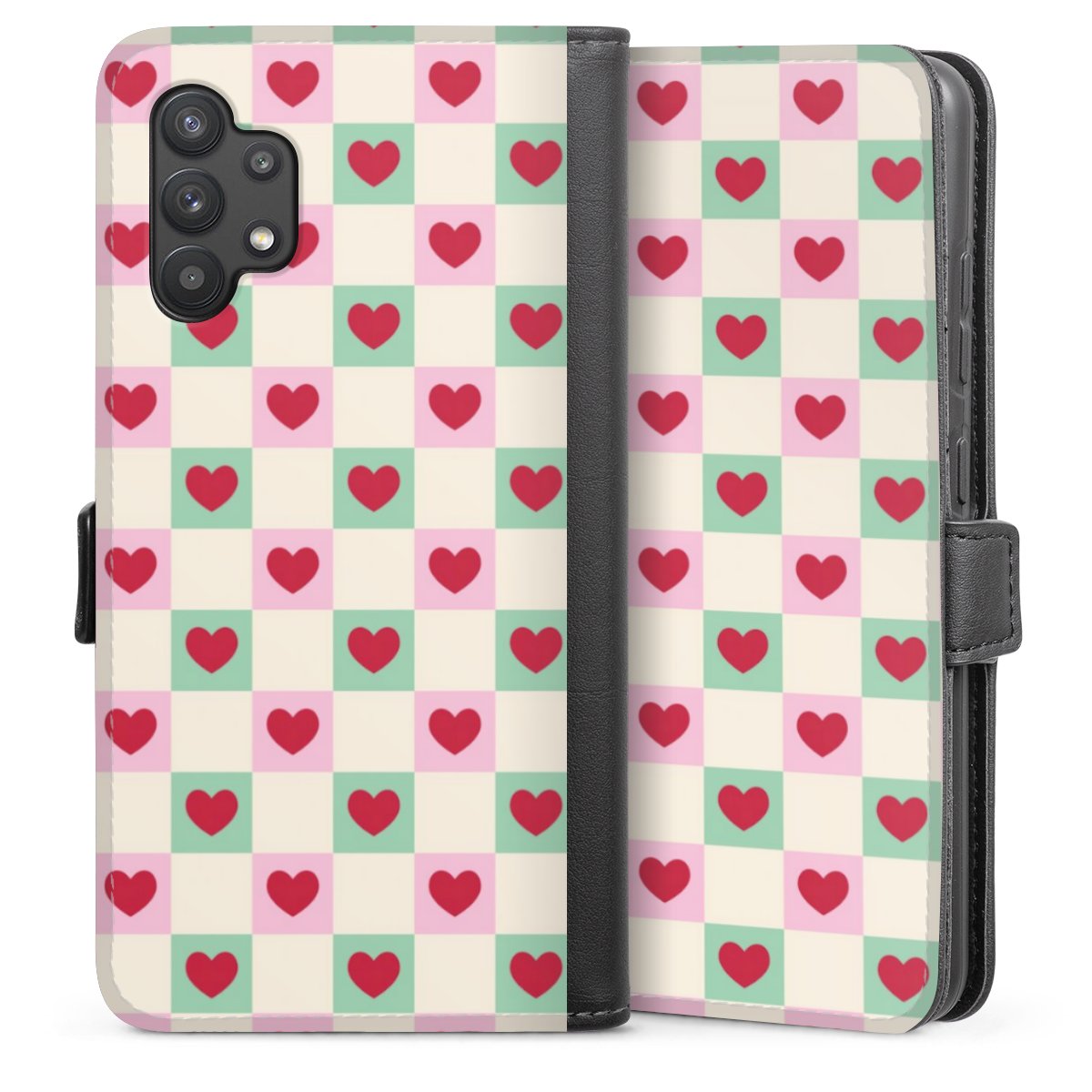 Valentine Checked Hearts Pattern Pink Green