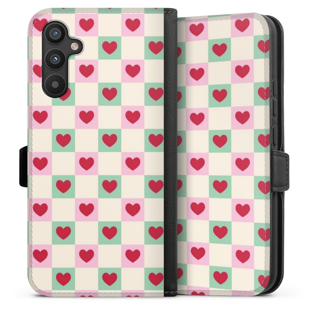 Valentine Checked Hearts Pattern Pink Green