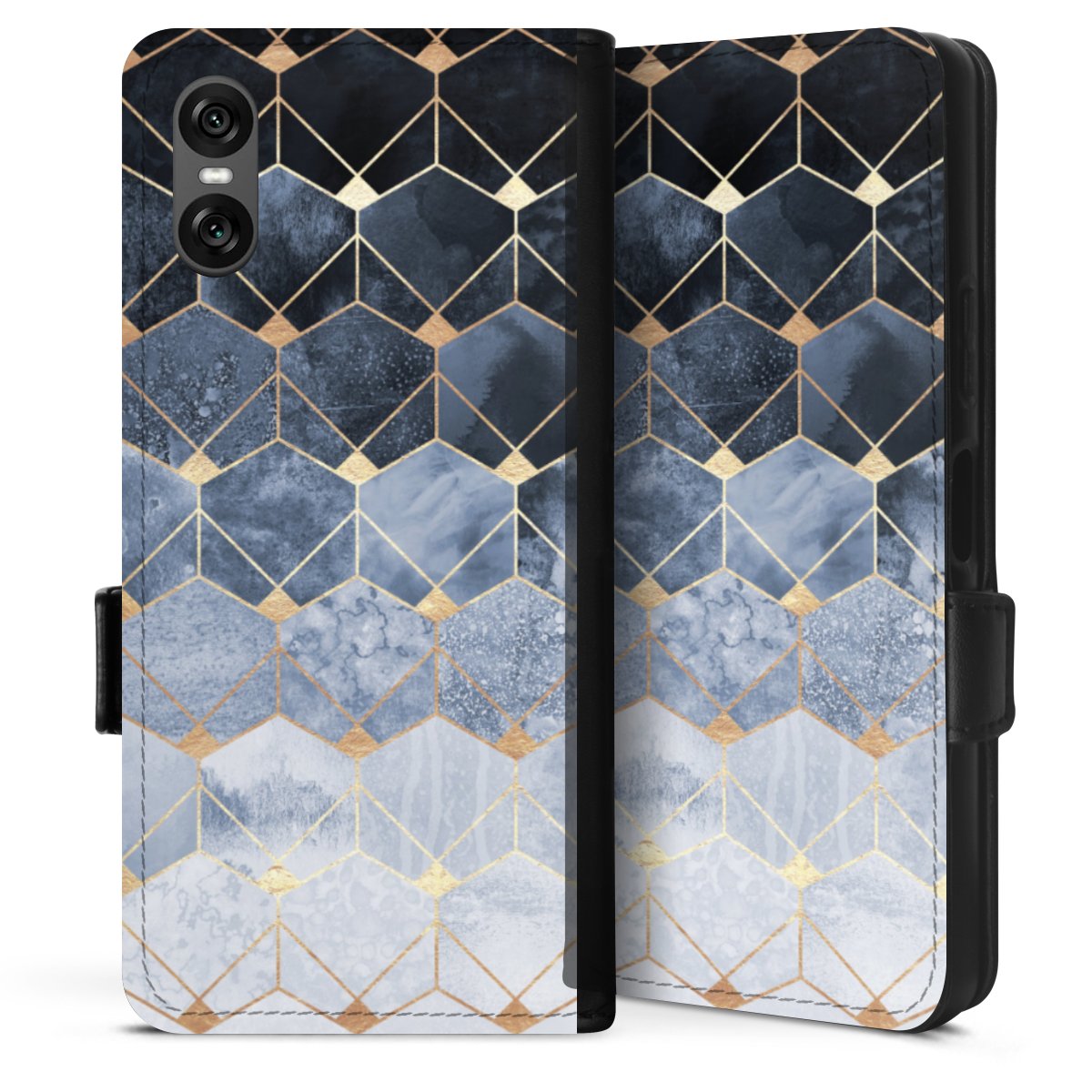 Blue Hexagons And Diamonds Gold Print