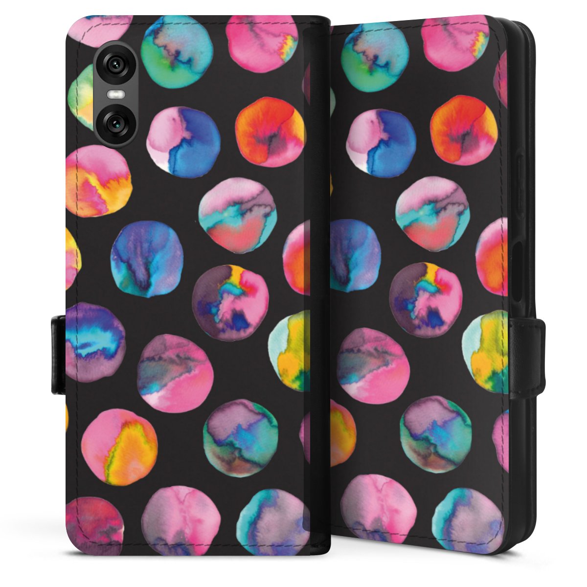 Colorful Ink Marbles Dots Black