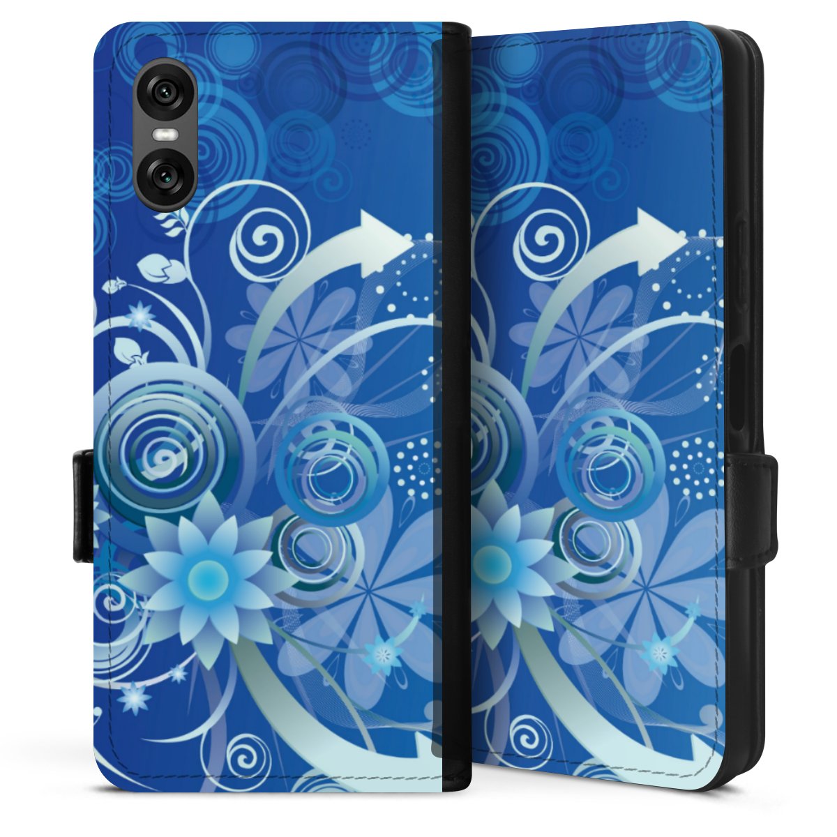 Flowers and Swirls Blue