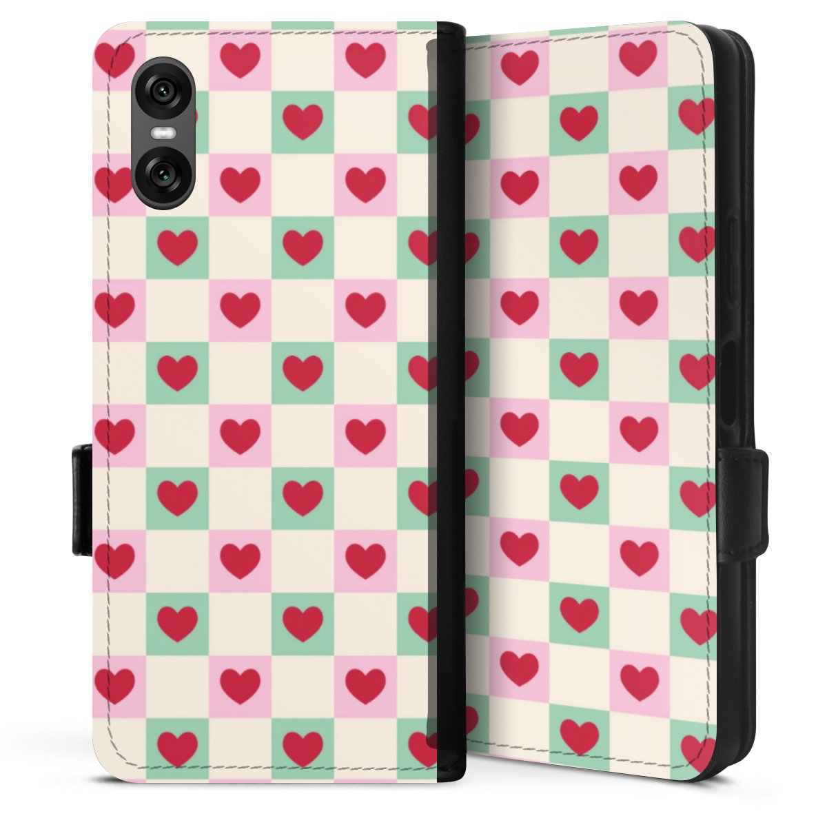 Valentine Checked Hearts Pattern Pink Green