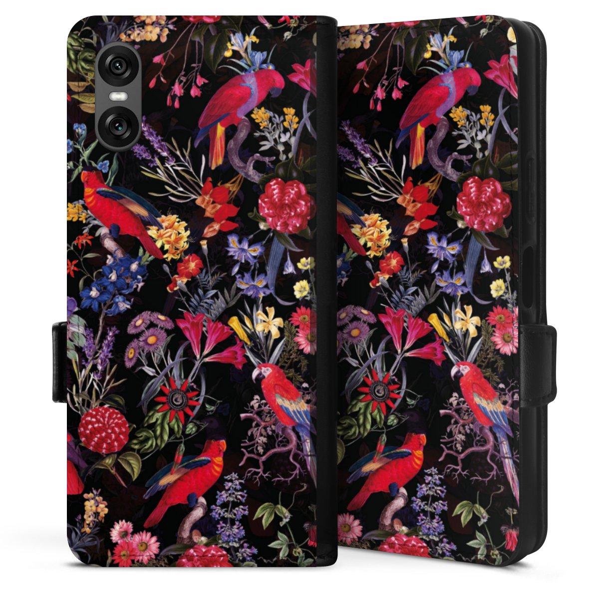 Dark Flowers and Parrots
