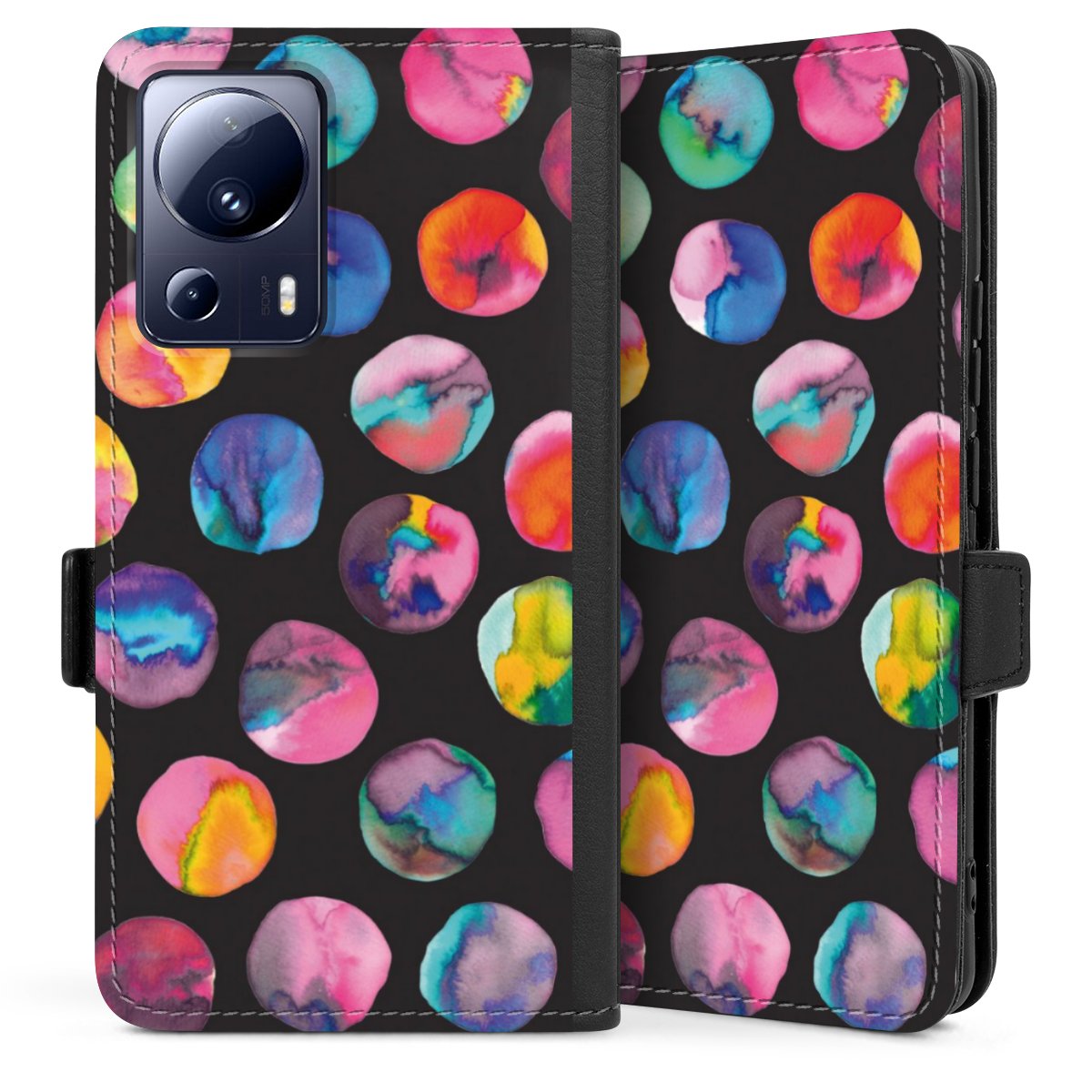 Colorful Ink Marbles Dots Black