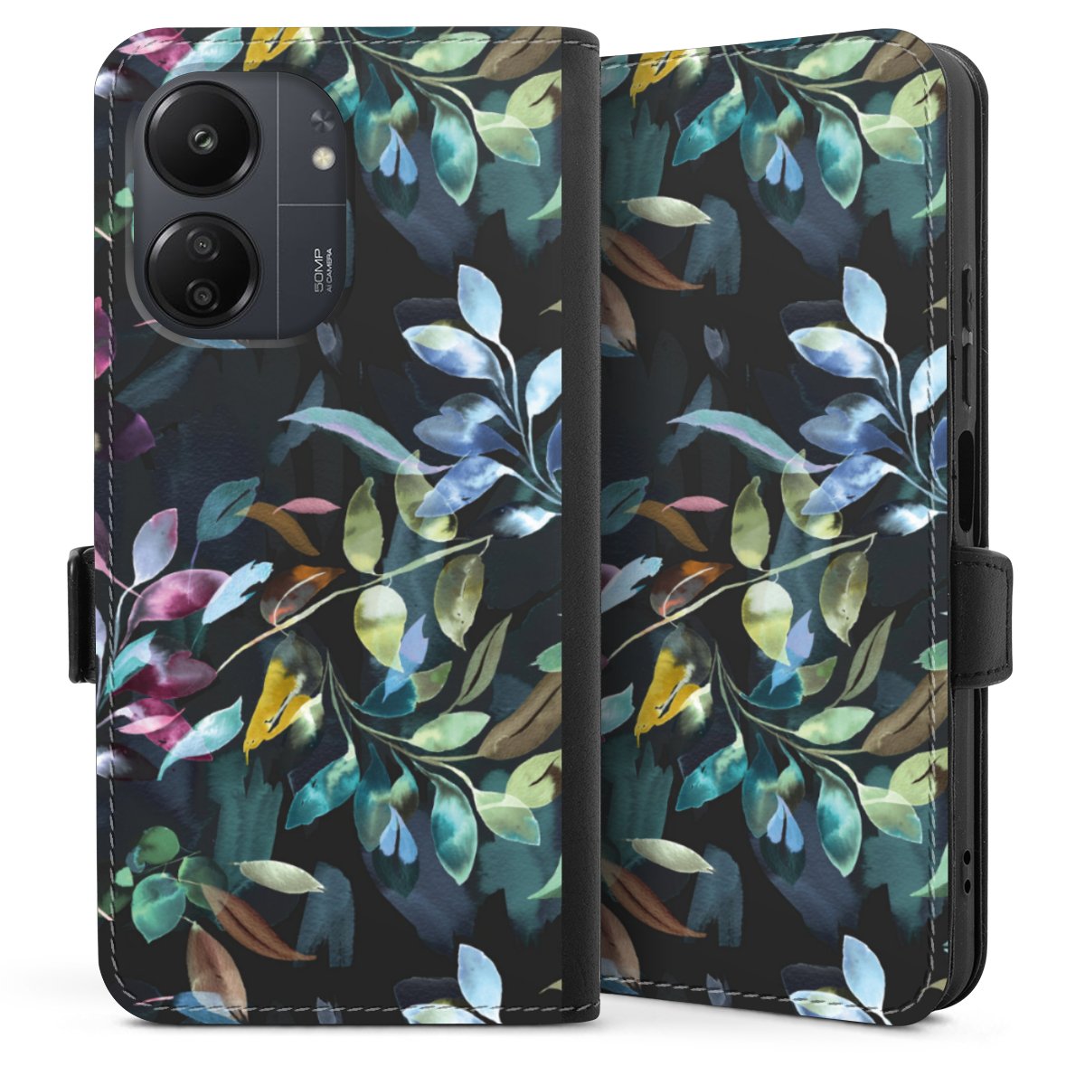 Watercolor Mystic Leaves Black