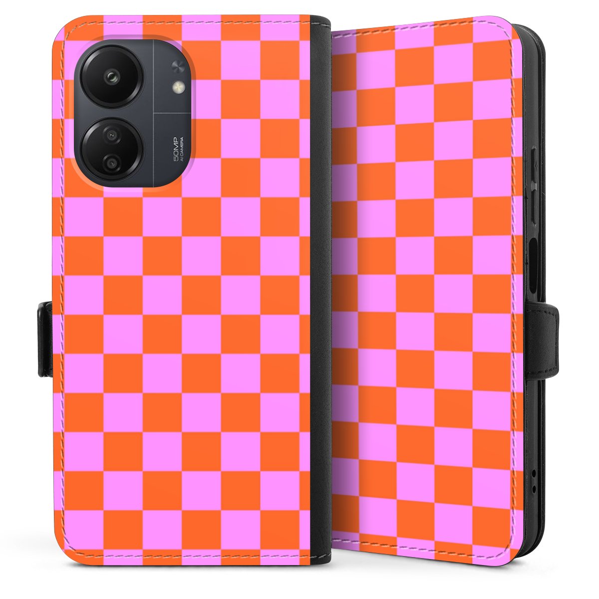 Checked Pattern Orange Pink Small Squares