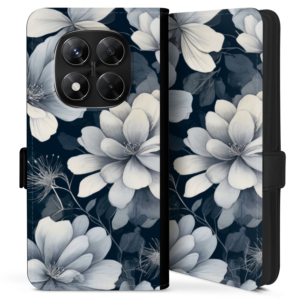 Negative Flower Blue White with AI