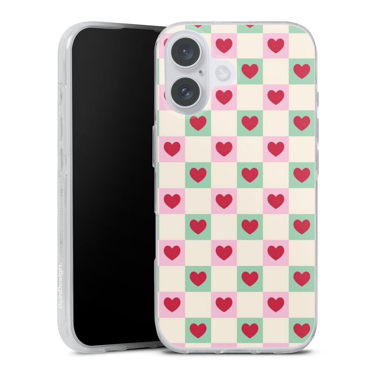 Valentine Checked Hearts Pattern Pink Green