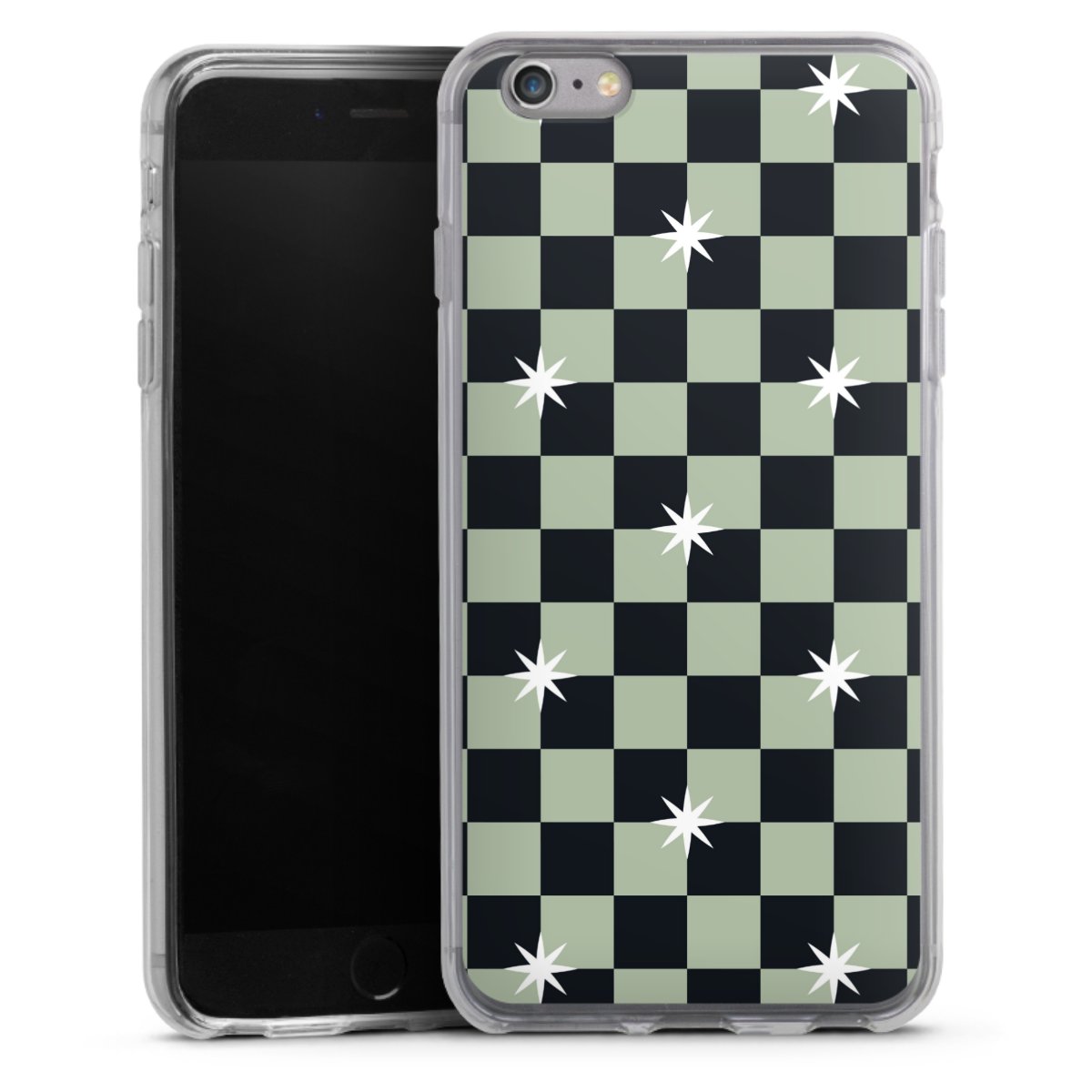 Checked Pattern Black Grey Stars