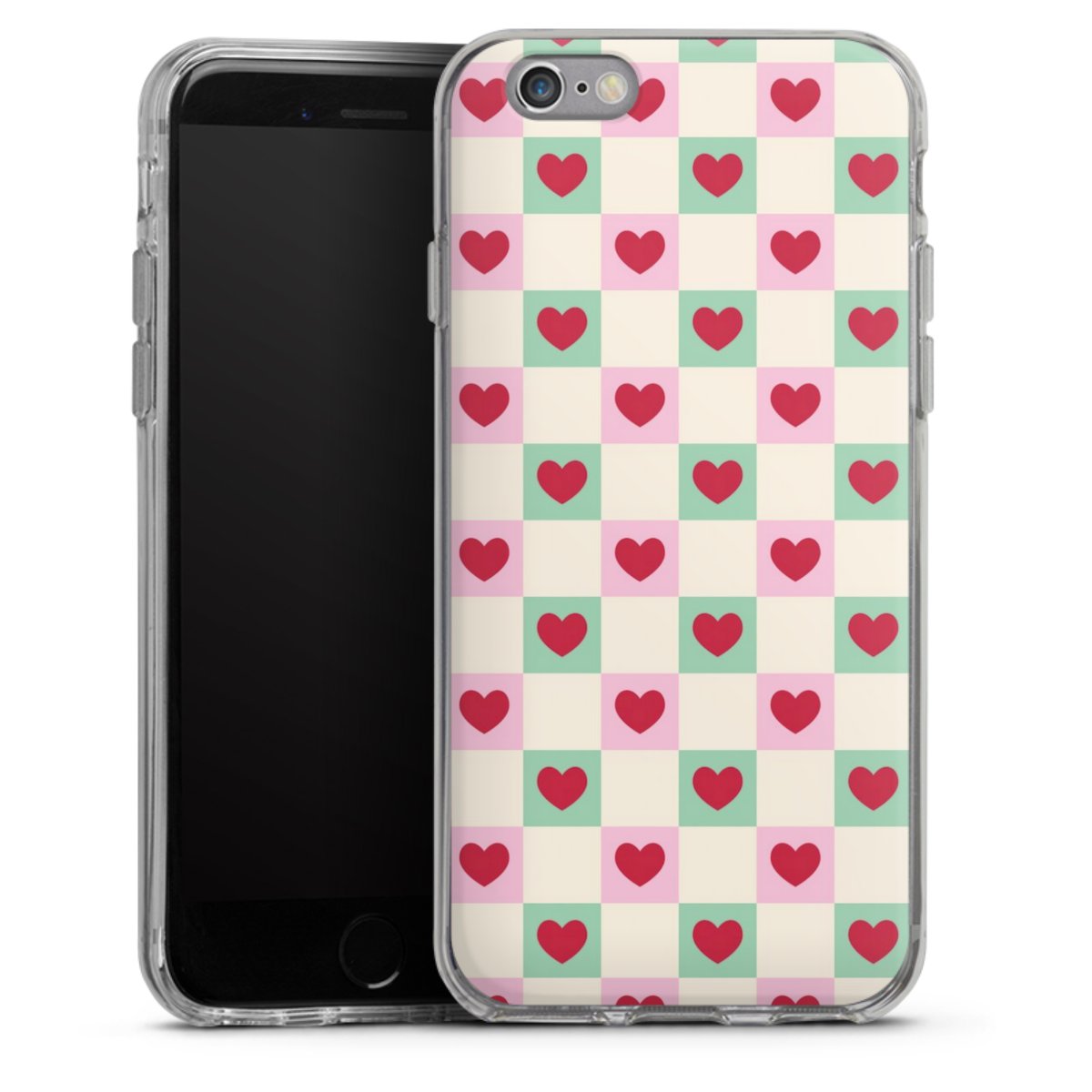 Valentine Checked Hearts Pattern Pink Green