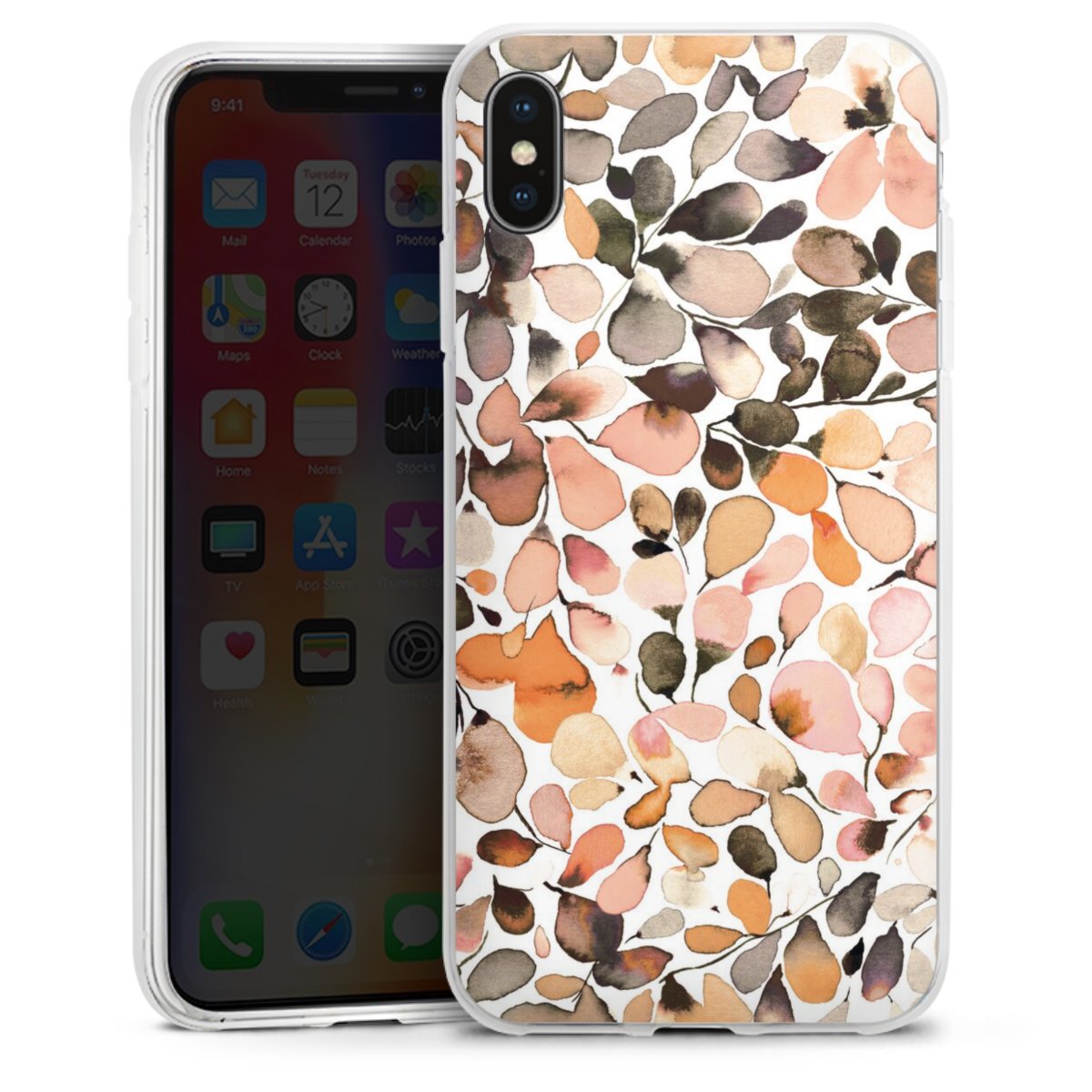 Eucalyptus Watercolor Leaves Dark Brown Autumn