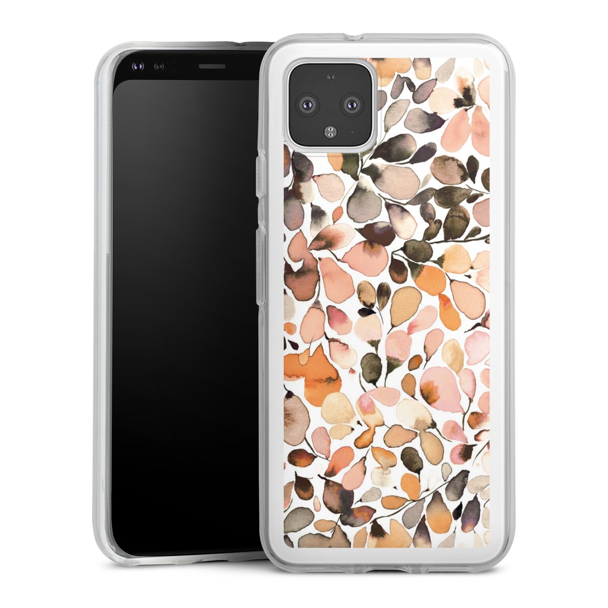 Eucalyptus Watercolor Leaves Dark Brown Autumn