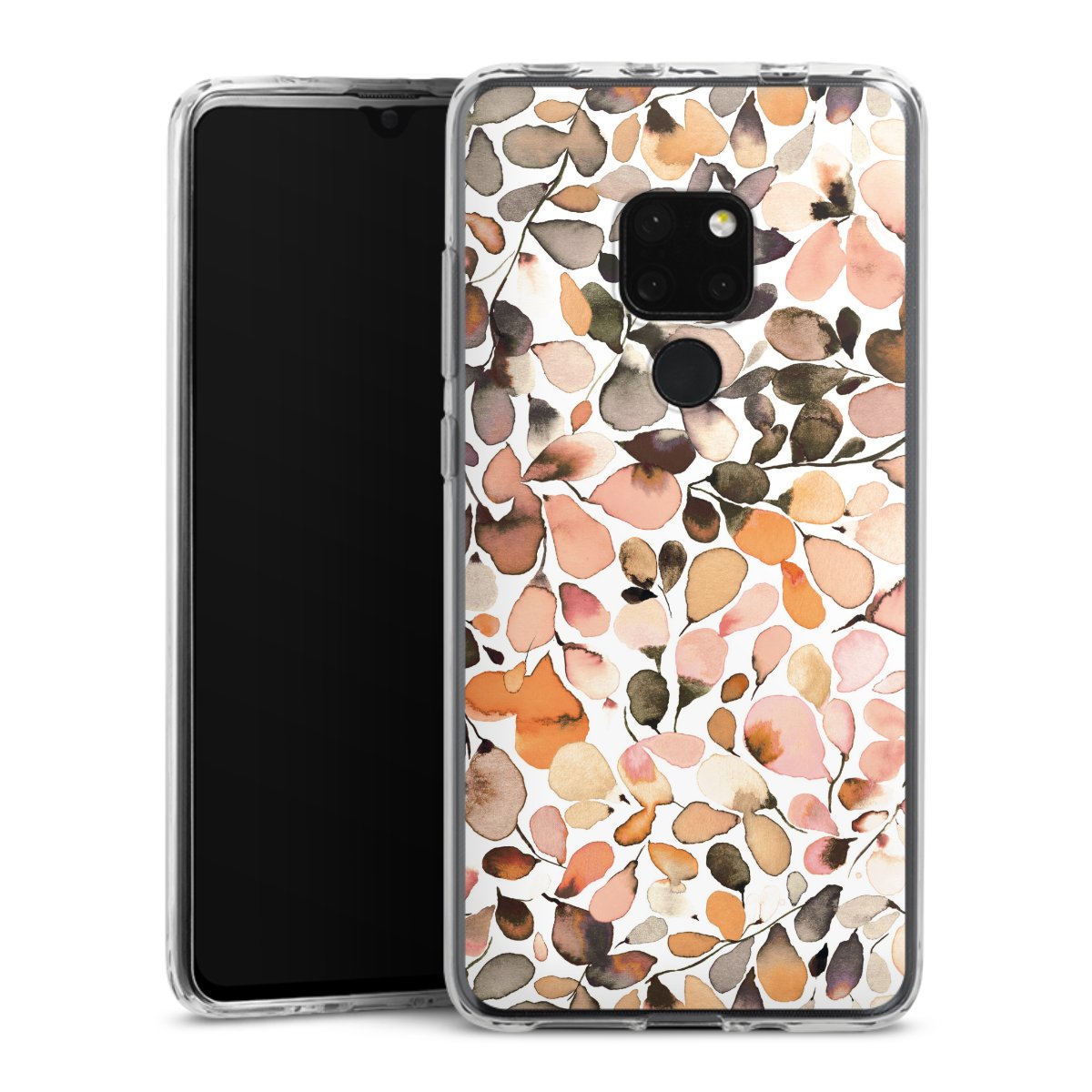 Eucalyptus Watercolor Leaves Dark Brown Autumn