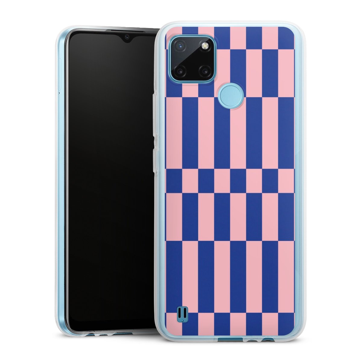 Checked Abstract Bold Electric Blue and Pink Color Block