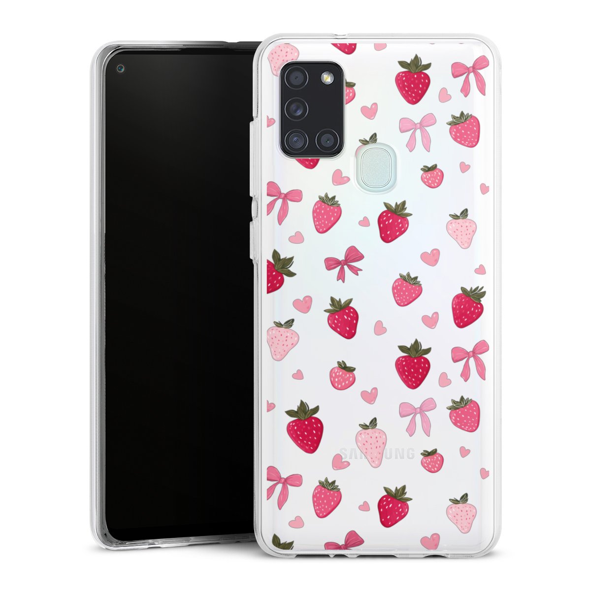 Strawberry Ribbon Pattern Pink Transparent