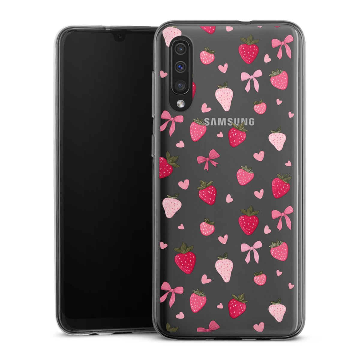 Strawberry Ribbon Pattern Pink Transparent