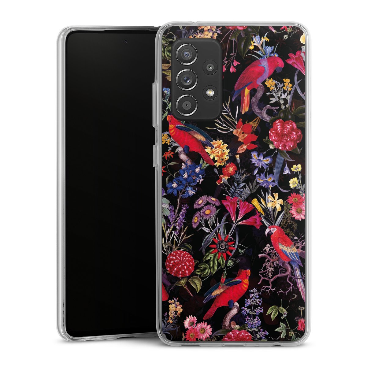 Dark Flowers and Parrots