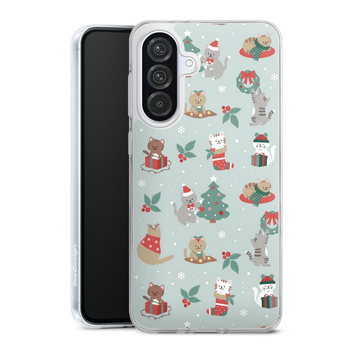 Cute Winter Wonderland Christmas Festive Cats on Teal