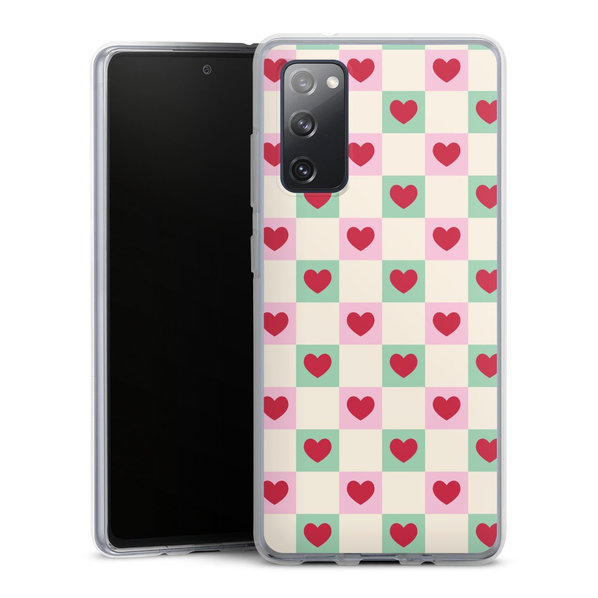 Valentine Checked Hearts Pattern Pink Green