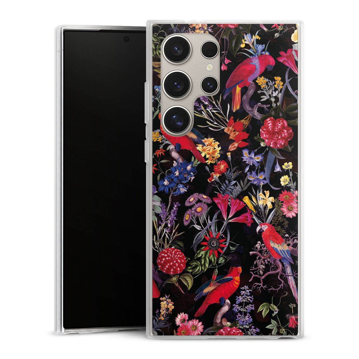 Dark Flowers and Parrots