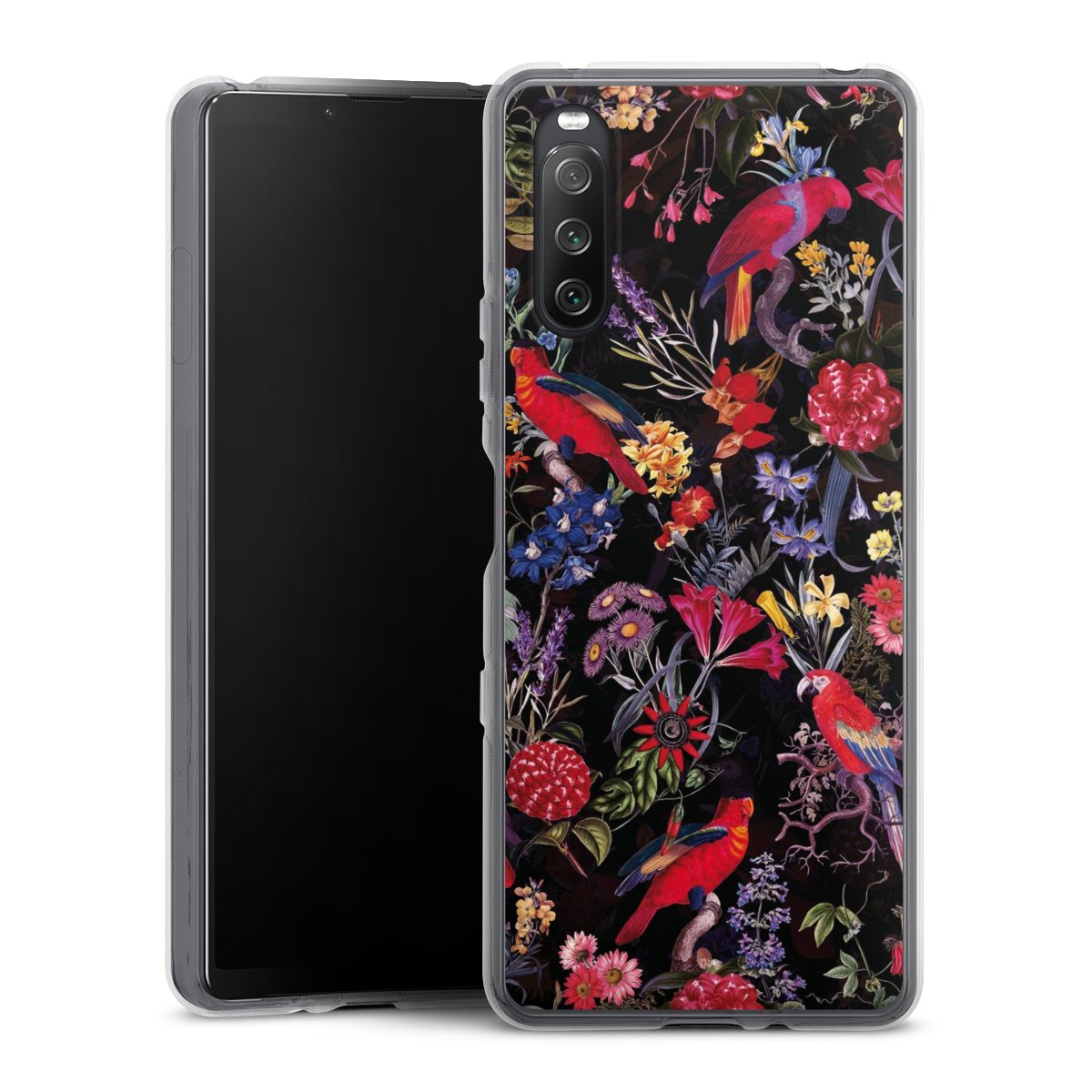 Dark Flowers and Parrots
