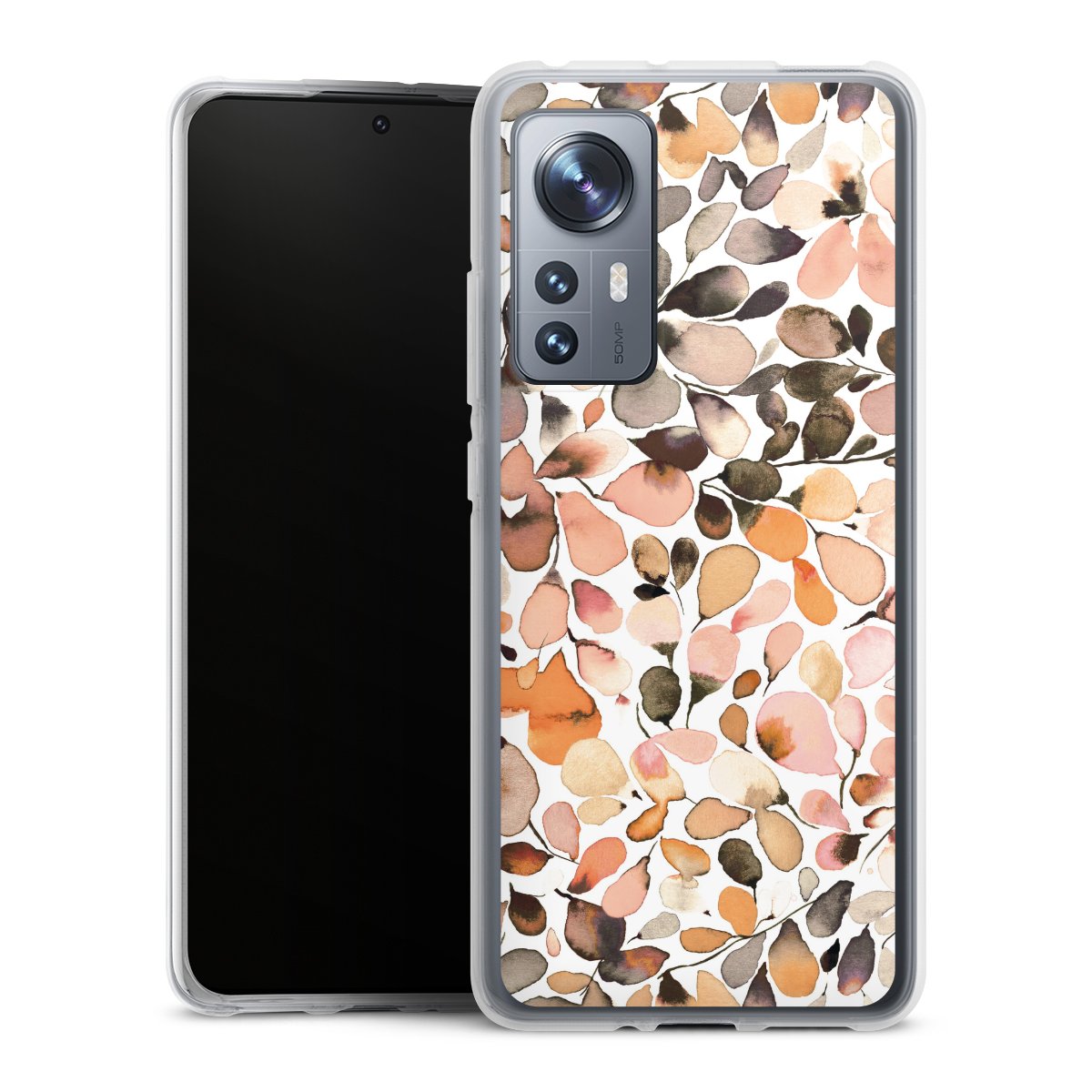 Eucalyptus Watercolor Leaves Dark Brown Autumn