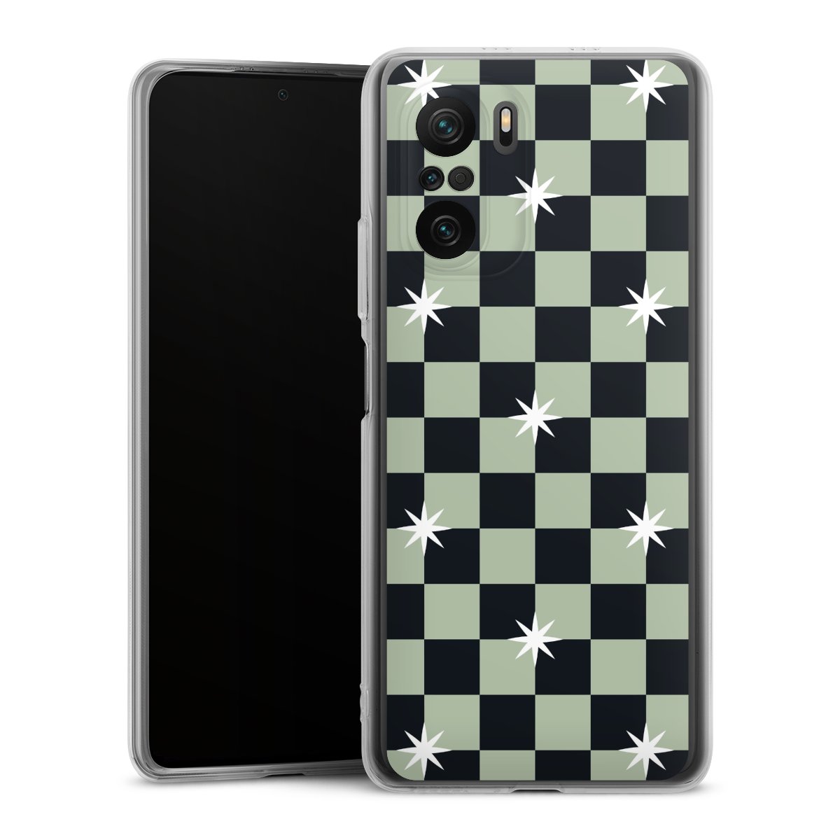 Checked Pattern Black Grey Stars