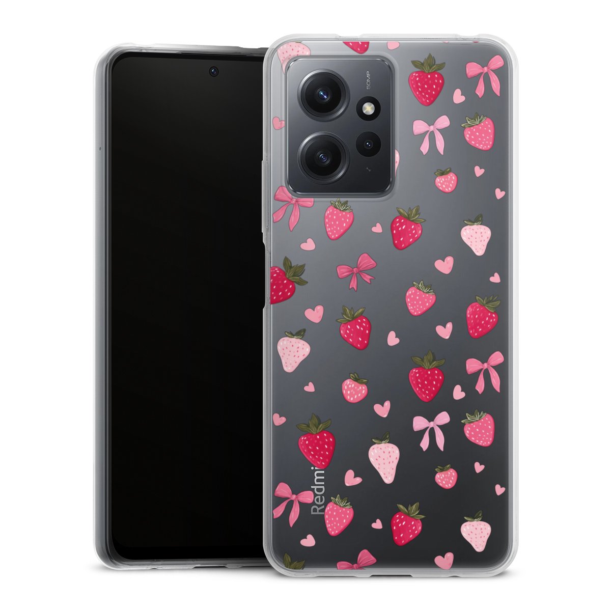 Strawberry Ribbon Pattern Pink Transparent