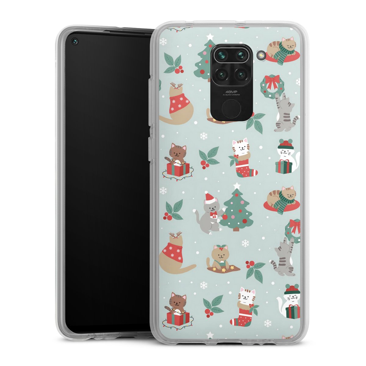 Cute Winter Wonderland Christmas Festive Cats on Teal