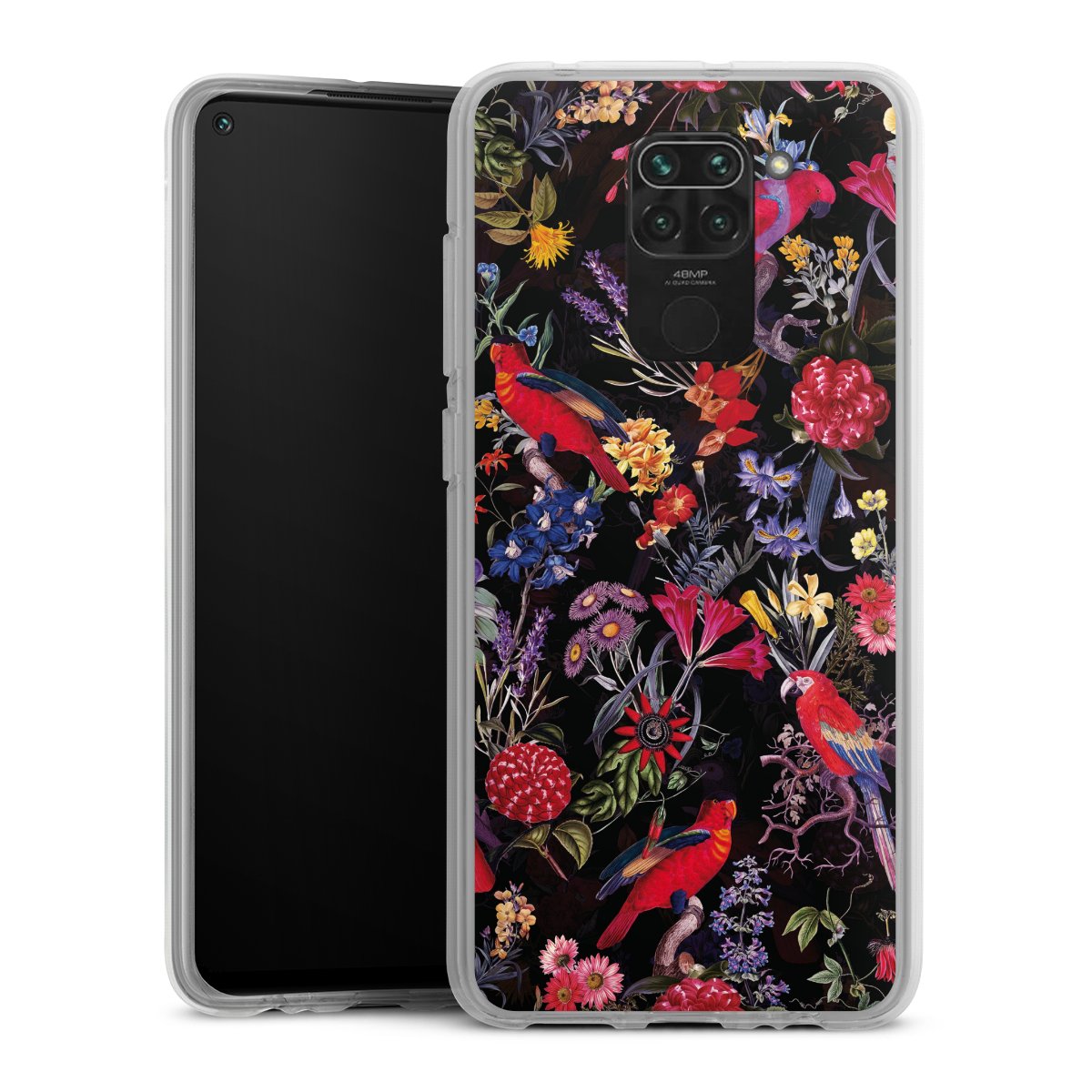 Dark Flowers and Parrots