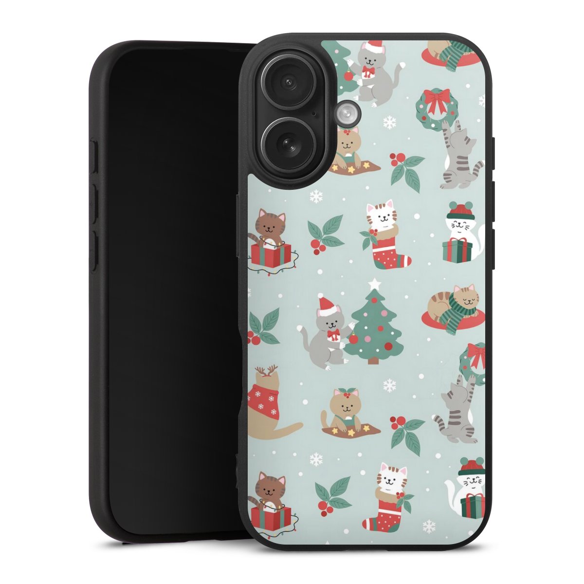 Cute Winter Wonderland Christmas Festive Cats on Teal