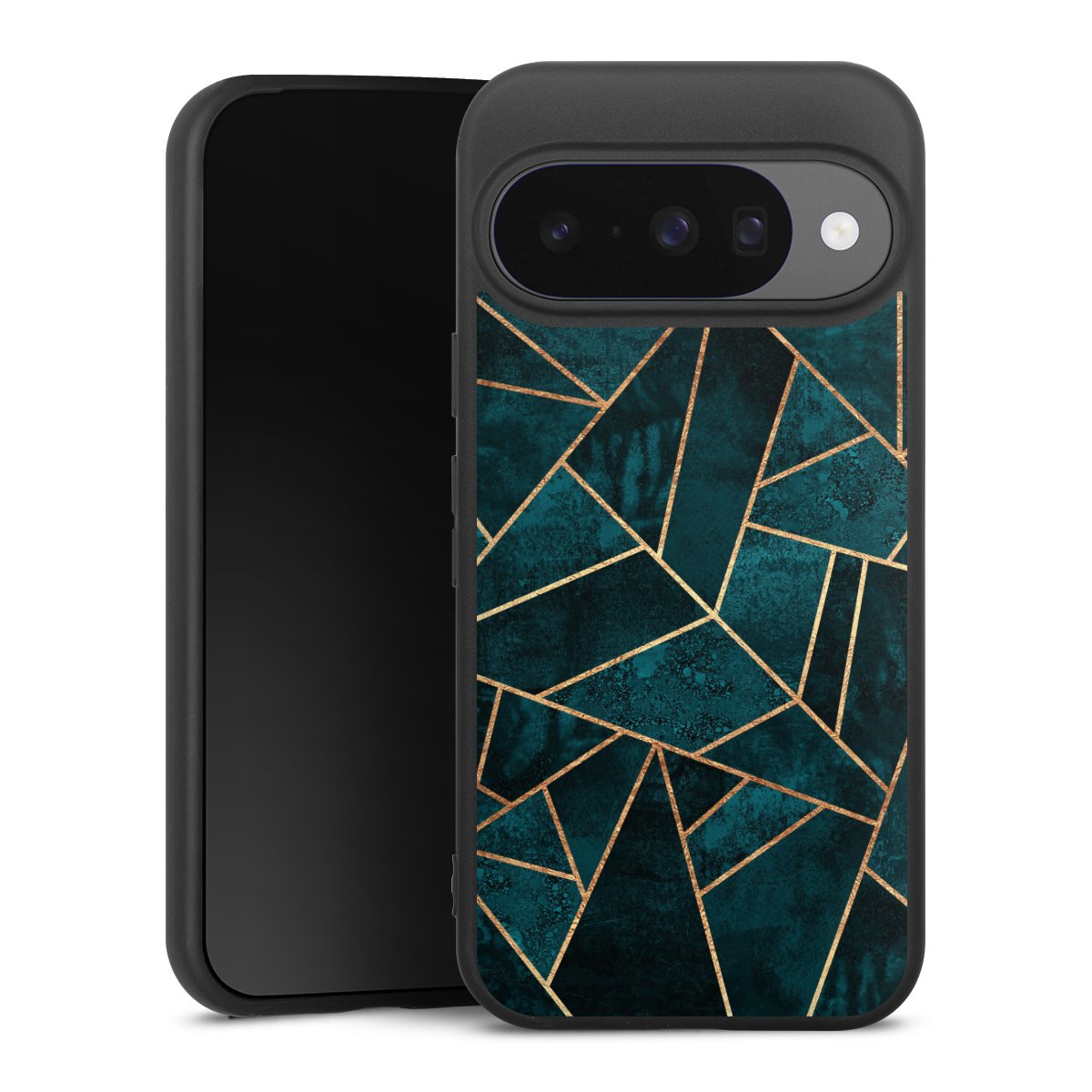 Deep Teal Stone Gold Print