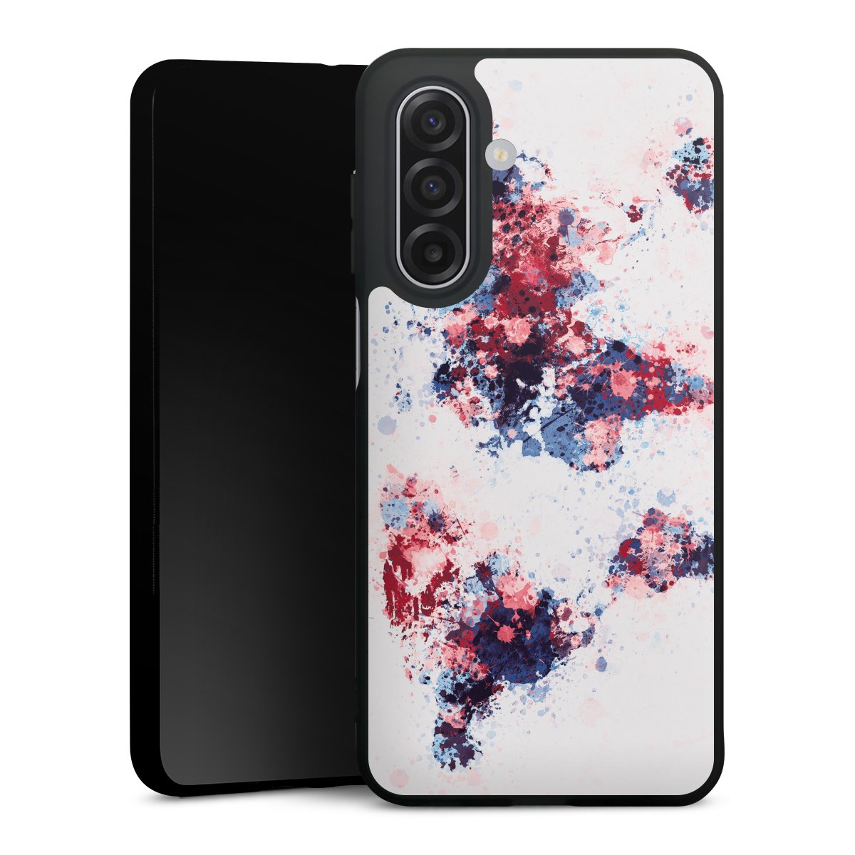World Map Paint Splashes Blue Red