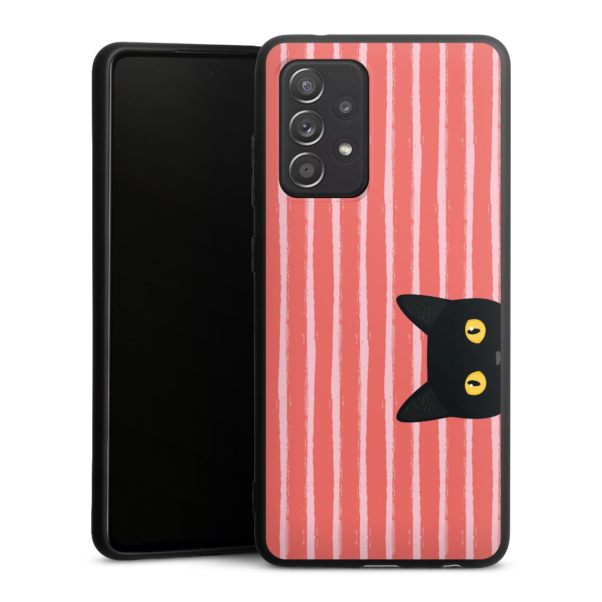 Black Cat on Orange Stripes