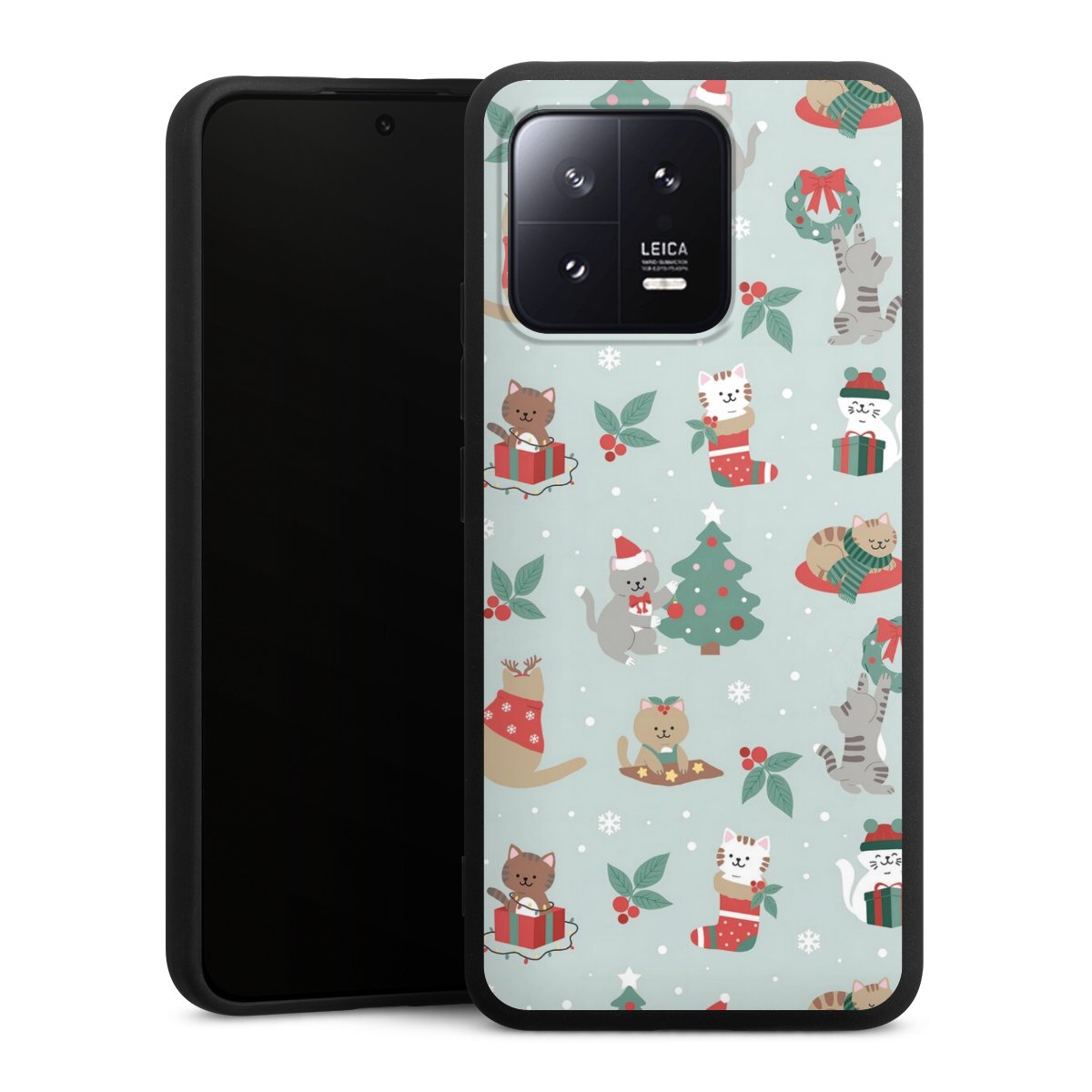 Cute Winter Wonderland Christmas Festive Cats on Teal