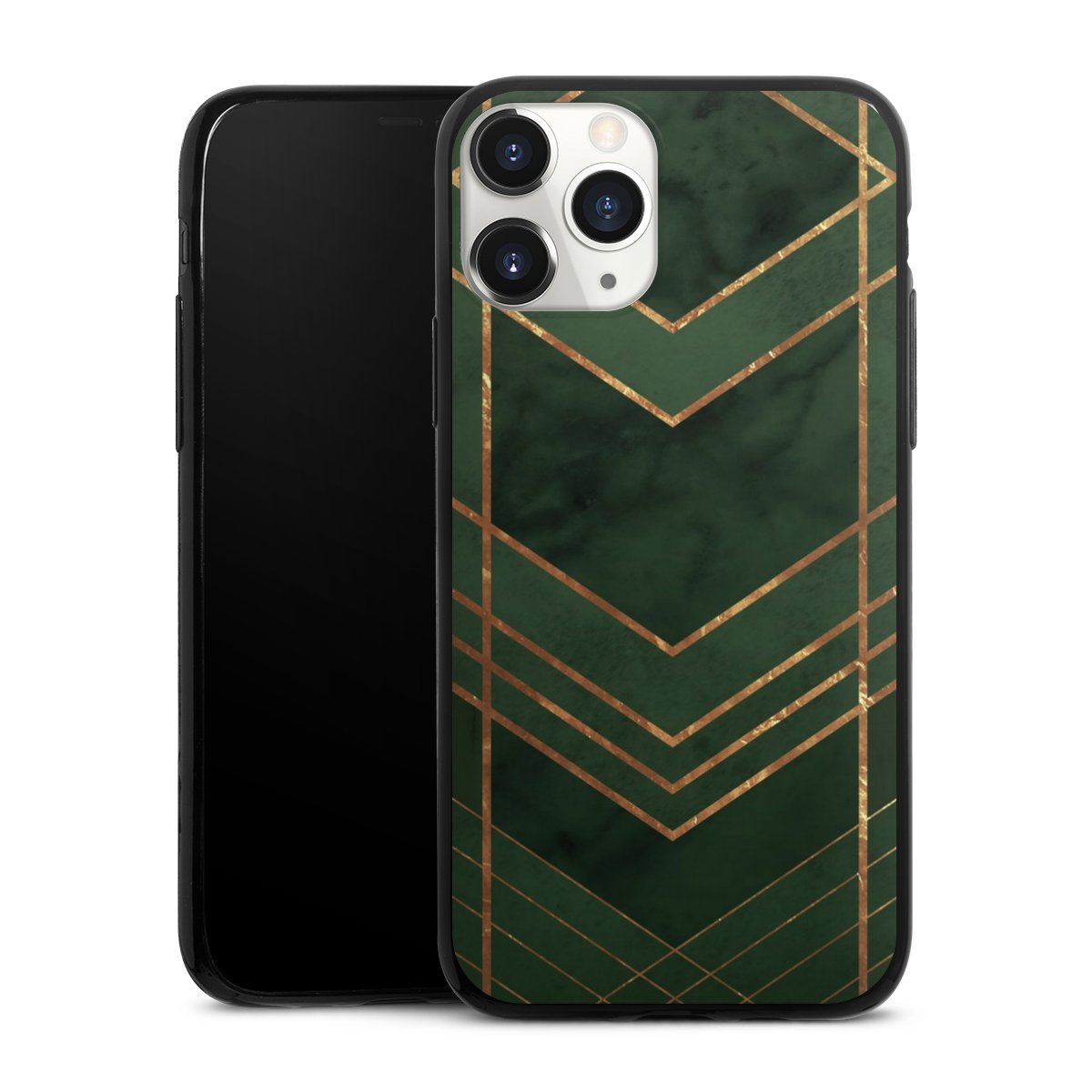 Dark Green Pattern Golden Stripes