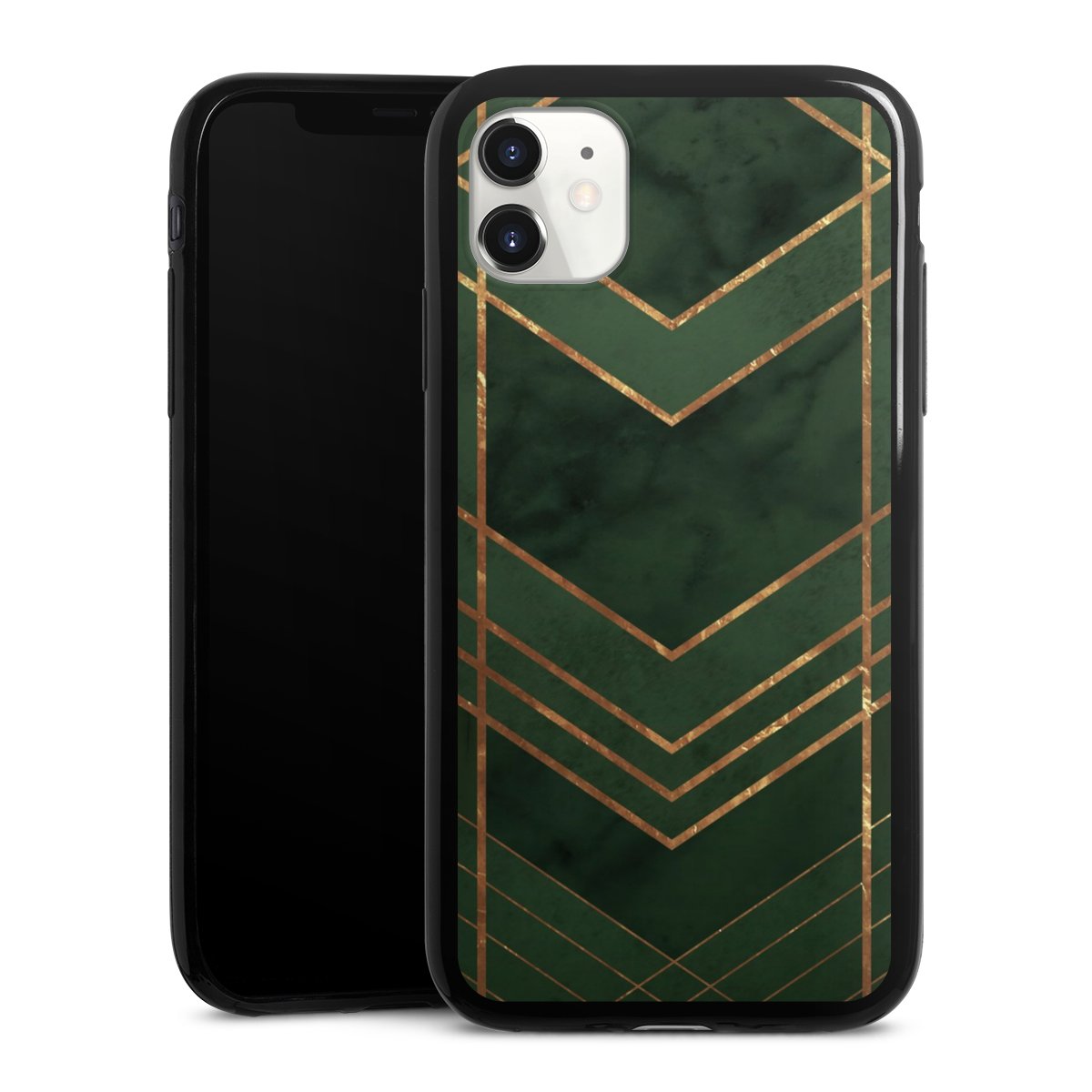 Dark Green Pattern Golden Stripes