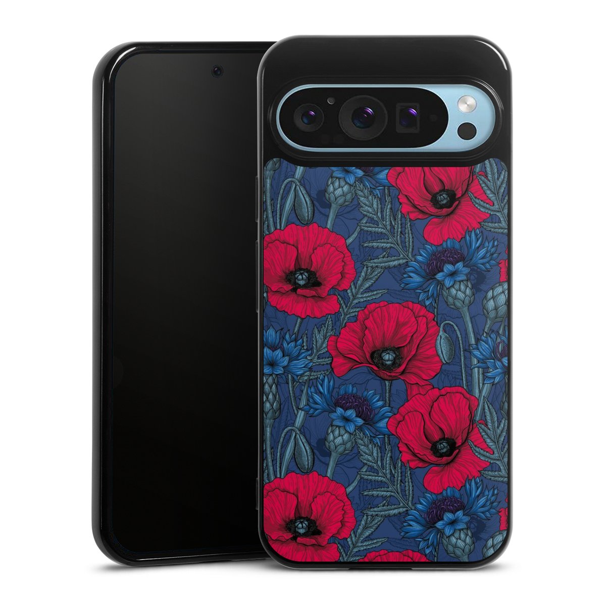 Poppies and Cornflowers on Blue