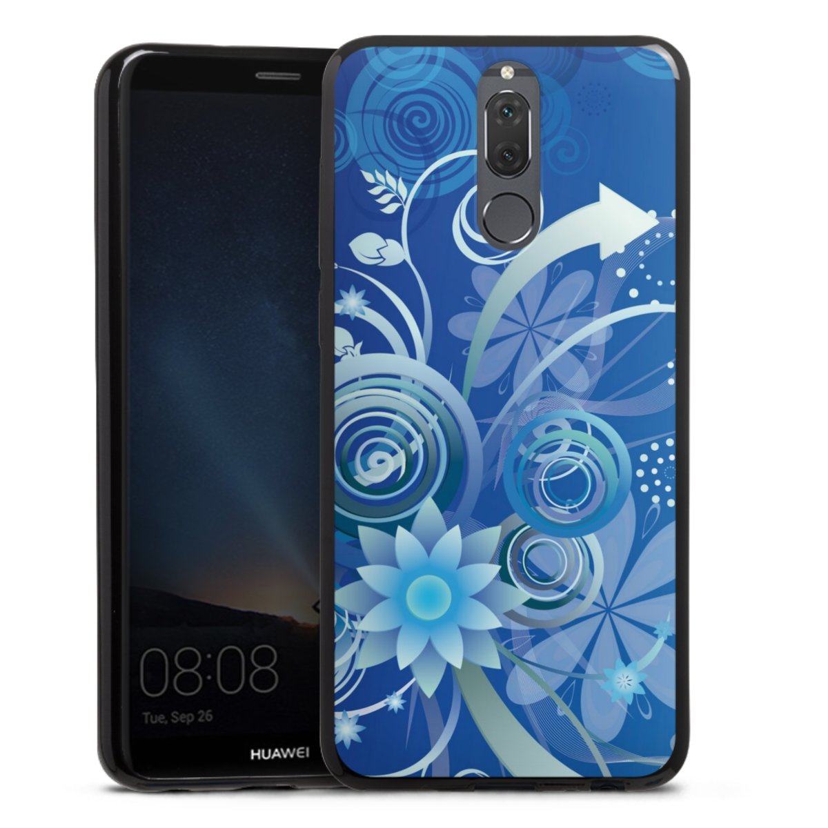 Flowers and Swirls Blue