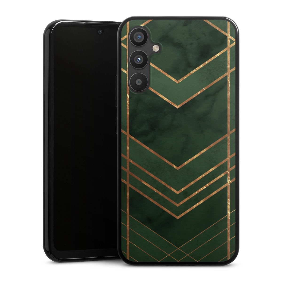 Dark Green Pattern Golden Stripes
