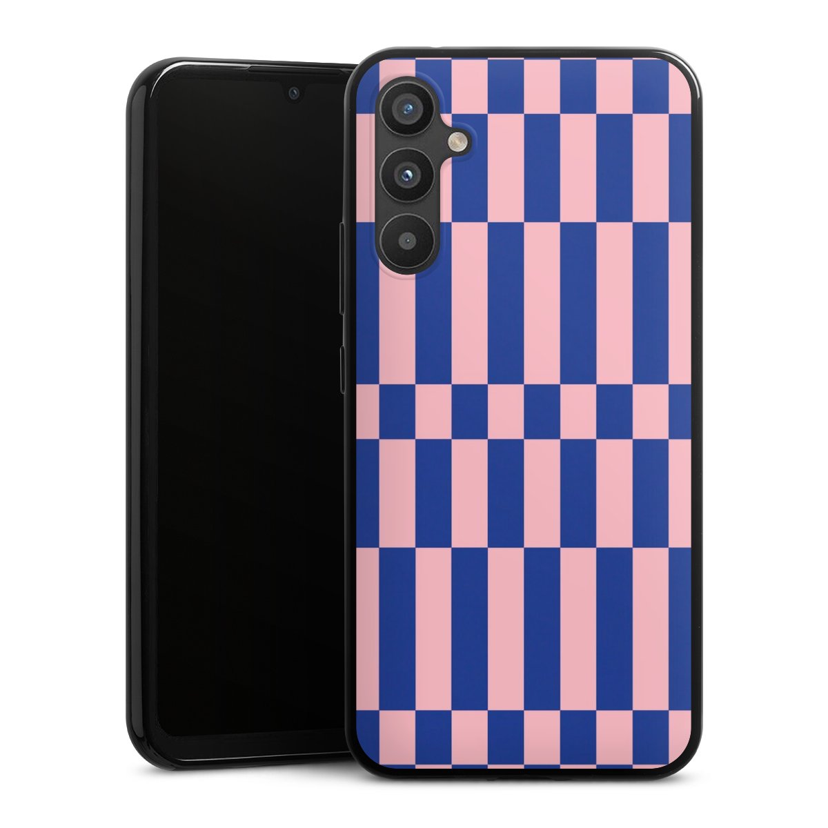 Checked Abstract Bold Electric Blue and Pink Color Block